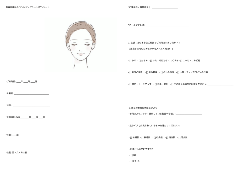 当院は上記のカウンセリングシートを用いてカウンセリングを実施しております。