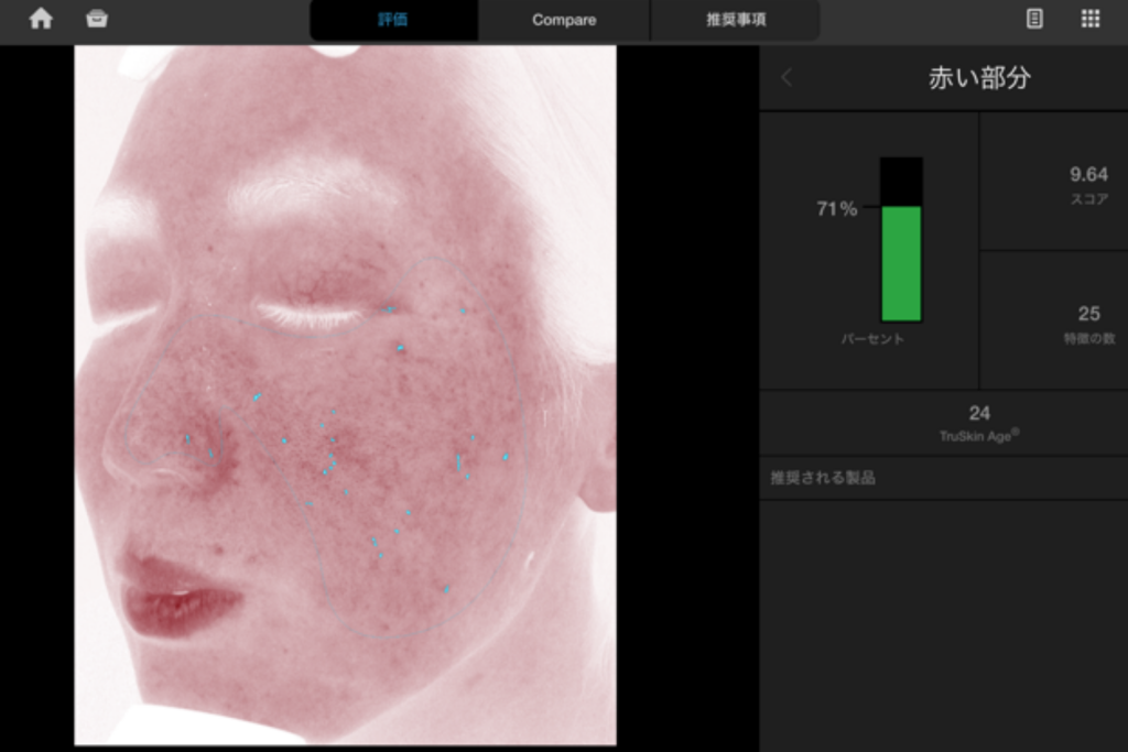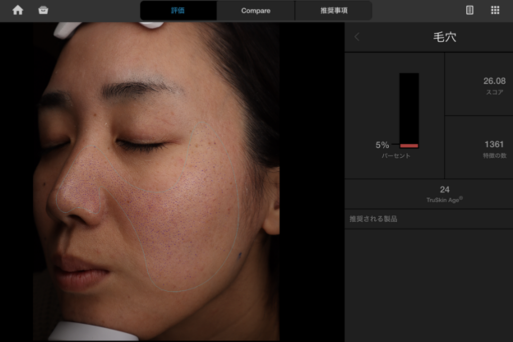 また、世界10万人以上のデータが入っているため、同年代と比べての肌状態も数値化して結果を出してくれます。