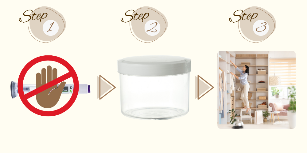 使用済み注射器は、針刺し事故を防ぐことが最優先です。迷った場合は処方元(当院/薬局)へ持参してください。