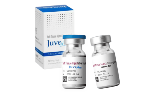 ジュベルックは、主成分に生分解性ポリ乳酸(PDLLA)と非架橋ヒアルロン酸を組み合わせた最新のスキンブースター製剤です。ヒアルロン酸による即時的な保湿効果と、PDLLAによるコラーゲン生成促進作用で、自然な肌質改善とハリの回復を目指します。ヒアルロン酸が数か月で代謝されるのに対し、PDLLAは体内でゆっくりと分解されながらコラーゲン産生を刺激します。そのため施術効果は最長18〜24か月と、他のスキンブースターよりも長期間持続します。